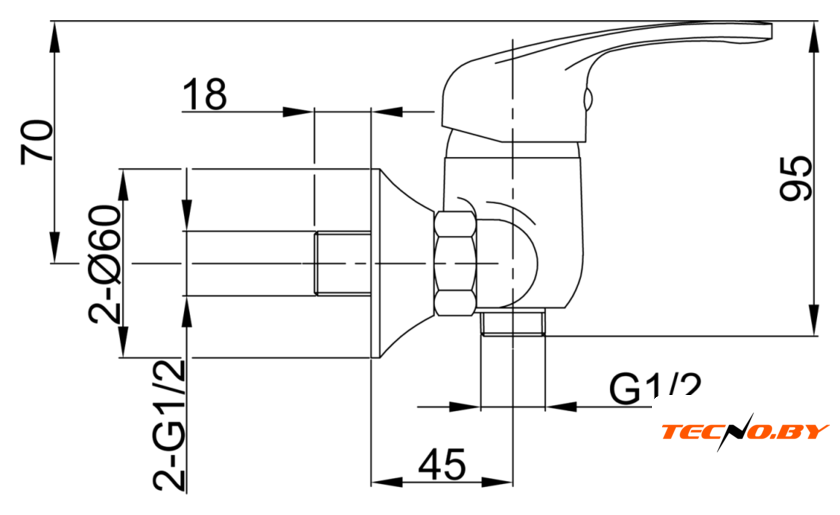 однорычажный смеситель для ванны и душа, монтаж на стену