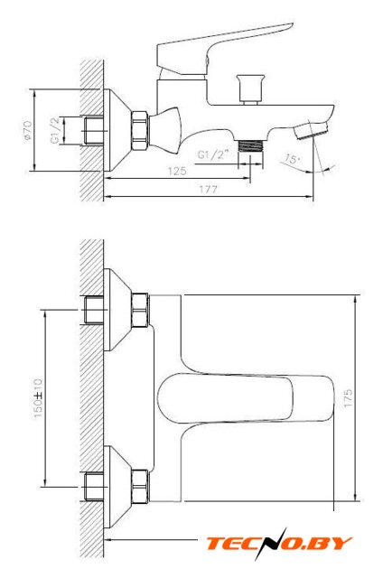 однорычажный смеситель для ванны и душа, монтаж на стену