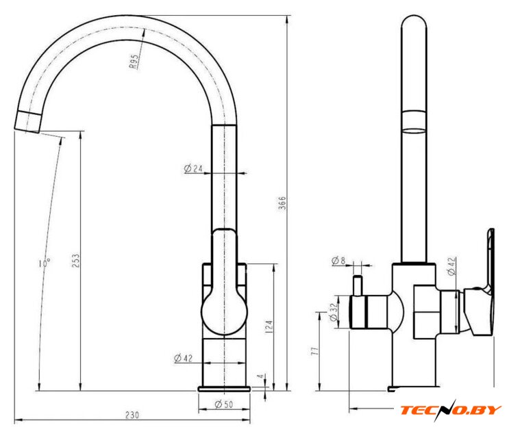 однорычажный смеситель для кухни, монтаж на раковину или столешницу