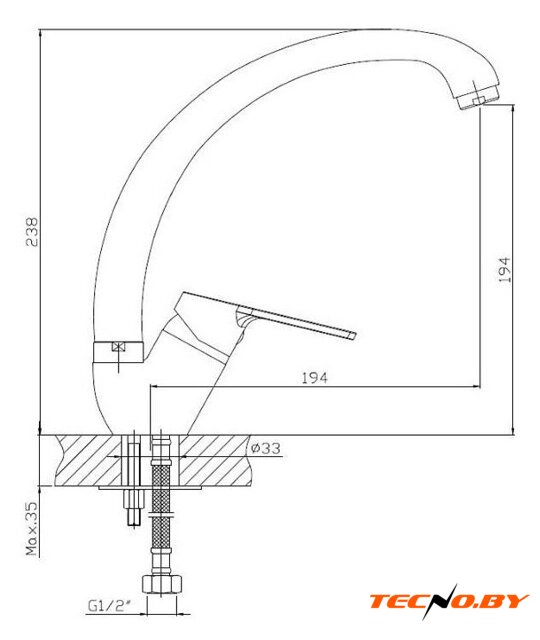 однорычажный смеситель для кухни, монтаж на раковину или столешницу