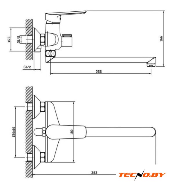 Длина (вылет) излива | 322 мм |