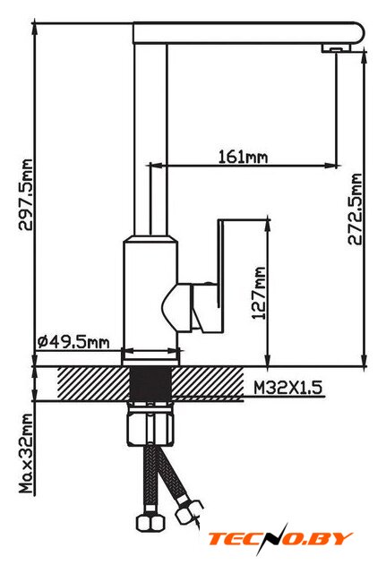 однорычажный смеситель для мойки, монтаж на раковину или столешницу
