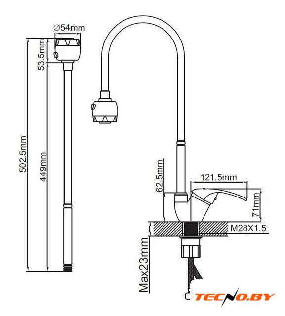 однорычажный смеситель для кухни, монтаж на раковину или столешницу