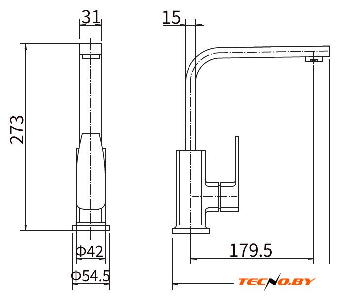 однорычажный смеситель для кухни, монтаж на раковину или столешницу