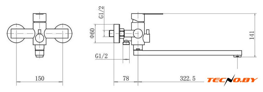 однорычажный смеситель для ванны и душа, монтаж на стену