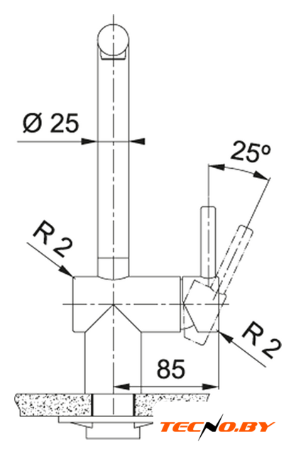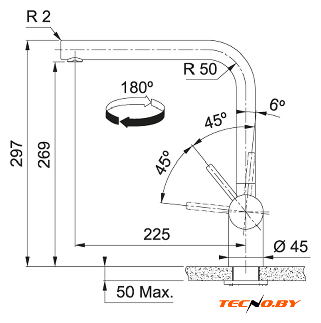 однорычажный смеситель для кухни, монтаж на раковину или столешницу
