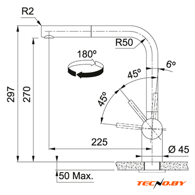 однорычажный смеситель для кухни, монтаж на раковину или столешницу