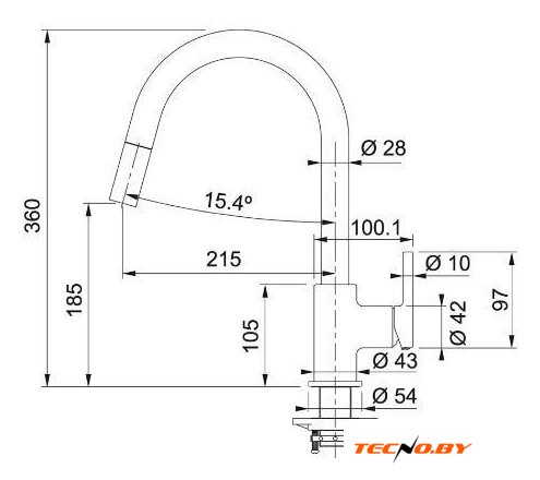 Длина (вылет) излива | 215 мм |