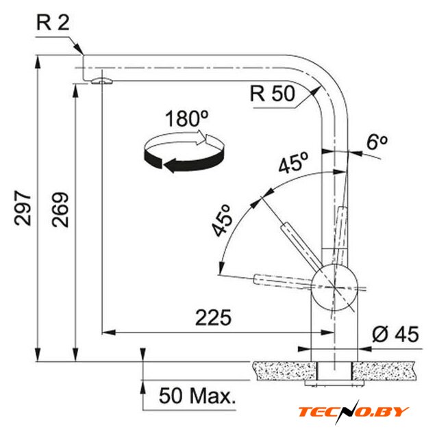 однорычажный смеситель для кухни, монтаж на раковину или столешницу
