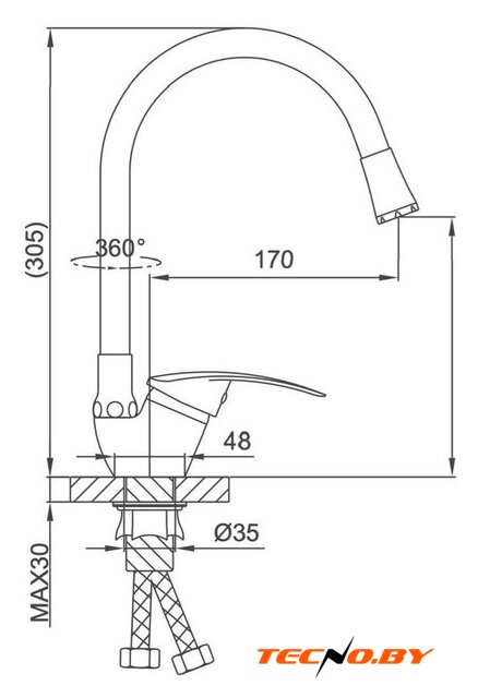 однорычажный смеситель для кухни, монтаж на раковину или столешницу