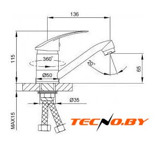 однорычажный смеситель для кухни, монтаж на раковину или столешницу