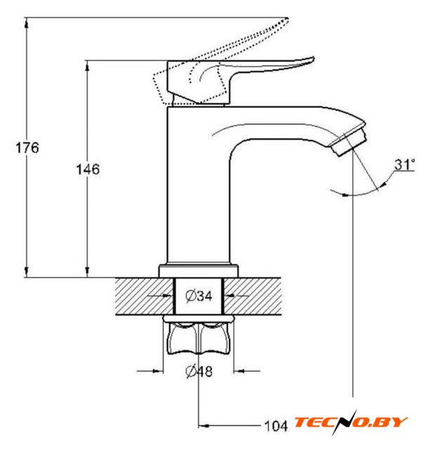 | Длина (вылет) излива | 104 мм |