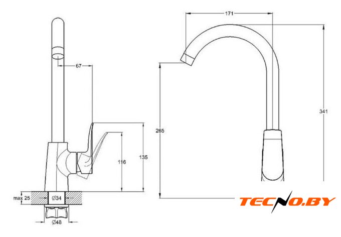 однорычажный смеситель для кухни, монтаж на раковину или столешницу