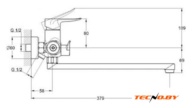однорычажный смеситель для ванны и душа, монтаж на стену