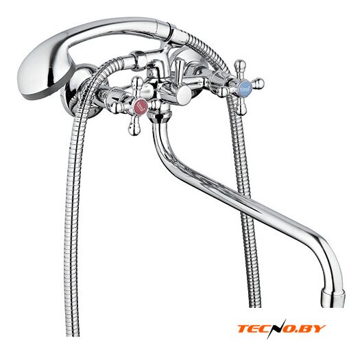 двухвентильный смеситель для ванны и душа, монтаж на стену