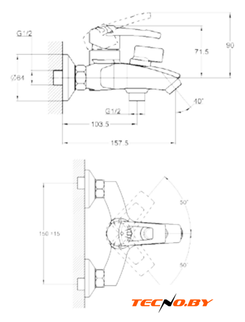 однорычажный смеситель для ванны и душа, монтаж на стену