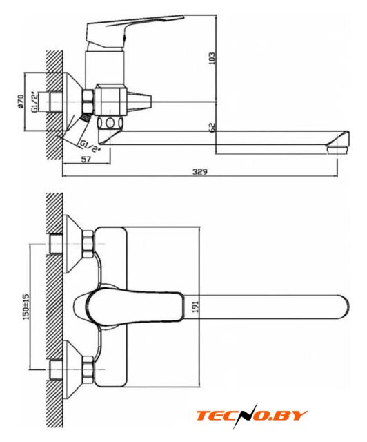 | Длина (вылет) излива | 329 мм |