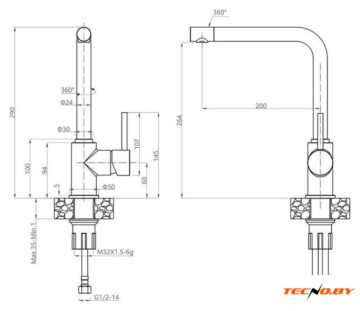 однорычажный смеситель для мойки, монтаж на раковину или столешницу