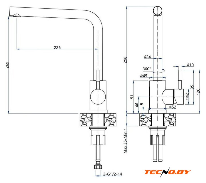 | Поворотный излив | 360 ° |