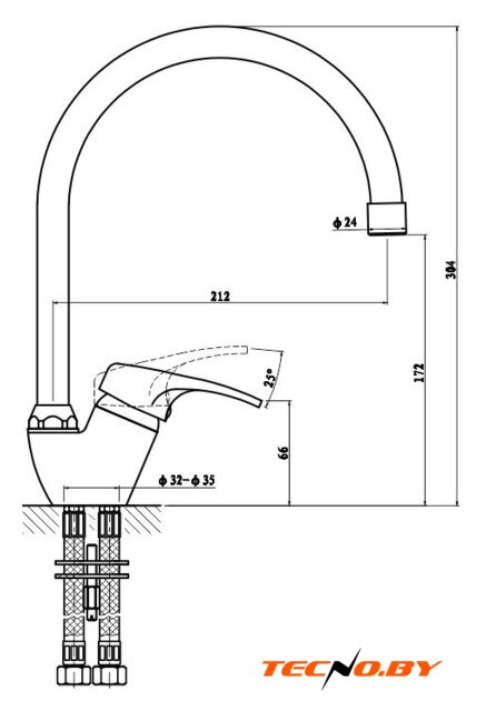 однорычажный смеситель для мойки, монтаж на раковину или столешницу