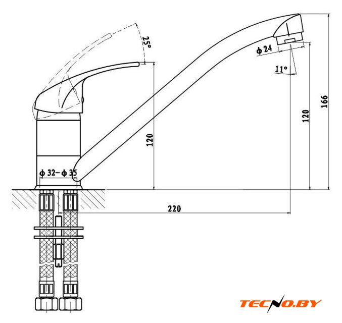 однорычажный смеситель для умывальника, монтаж на раковину или столешницу