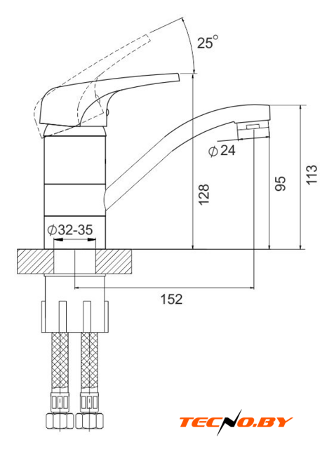 | Длина (вылет) излива | 152 мм |