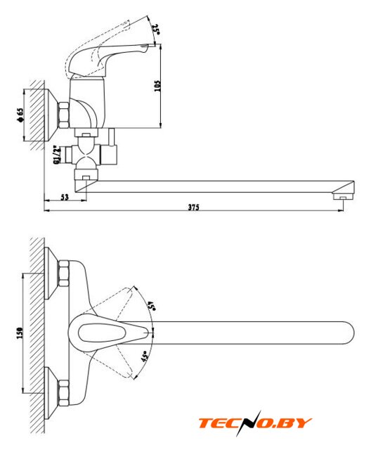 однорычажный смеситель для ванны и душа, монтаж на стену
