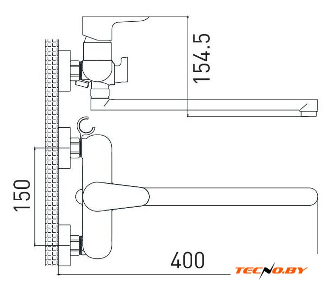 однорычажный смеситель для ванны и душа, монтаж на стену