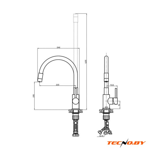 однорычажный смеситель для кухни, монтаж на раковину или столешницу