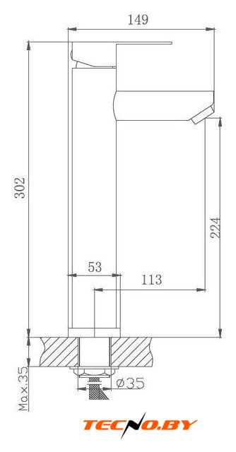 однорычажный смеситель для умывальника, монтаж на раковину или столешницу