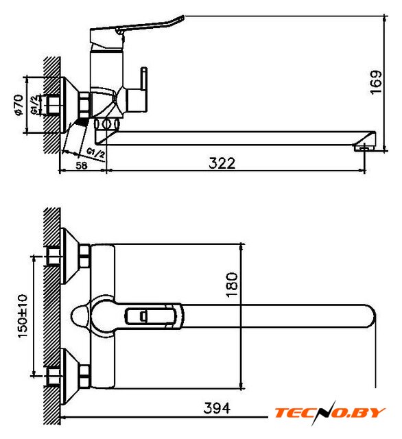 однорычажный смеситель для ванны и душа, монтаж на стену