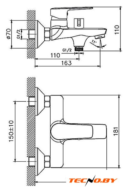 однорычажный смеситель для ванны и душа, монтаж на стену