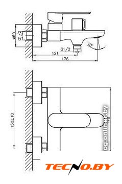 однорычажный смеситель для ванны и душа, монтаж на стену