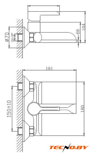 однорычажный смеситель для ванны и душа, монтаж на стену