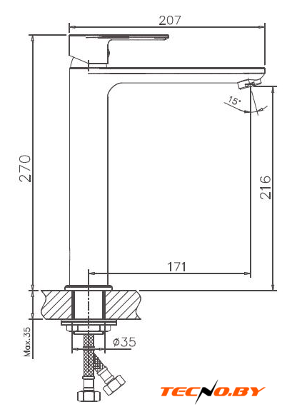 однорычажный смеситель для кухни, монтаж на раковину или столешницу