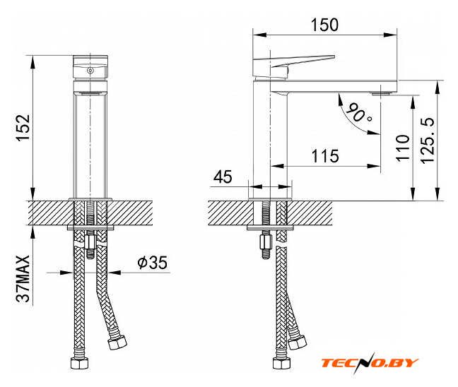 однорычажный смеситель для умывальника, монтаж на раковину или столешницу
