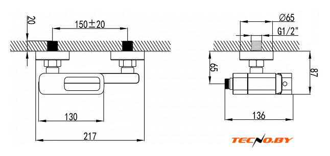 однорычажный смеситель для ванны и душа, монтаж на стену
