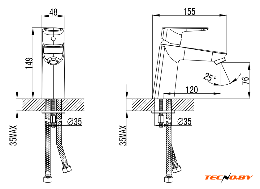 однорычажный смеситель для умывальника, монтаж на раковину или столешницу
