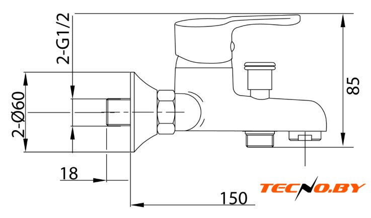 однорычажный смеситель для ванны и душа, монтаж на стену