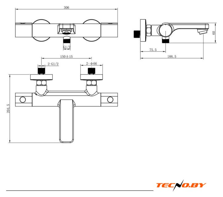 однорычажный смеситель для ванны и душа, монтаж на стену