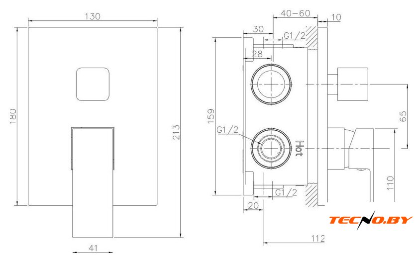 однорычажный смеситель для умывальника/для ванны и душа, монтаж на раковину или столешницу