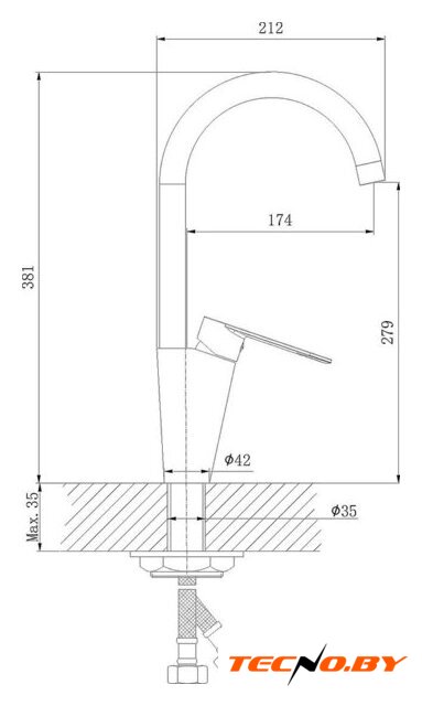 однорычажный смеситель для кухни, монтаж на раковину или столешницу