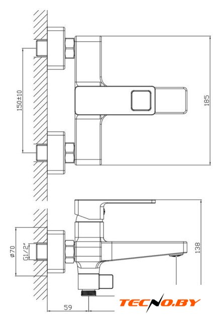 однорычажный смеситель для ванны и душа, монтаж на стену