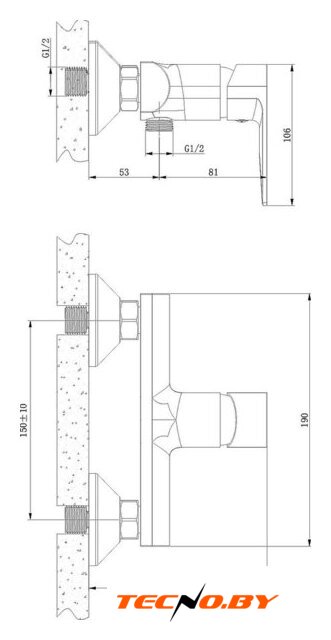однорычажный смеситель для ванны и душа, монтаж на стену