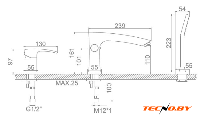 однорычажный смеситель для ванны и душа, монтаж на стену