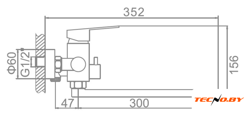 однорычажный смеситель для душа, монтаж на стену