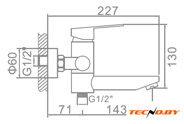 однорычажный смеситель для ванны и душа, монтаж на стену