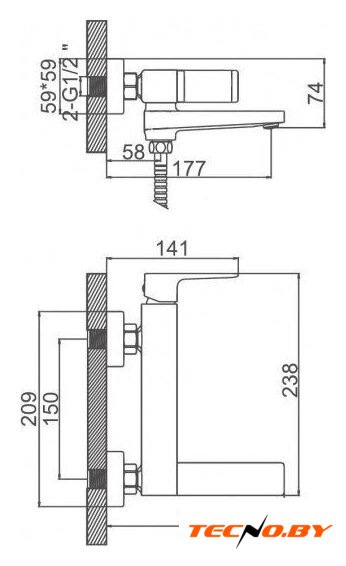 однорычажный смеситель для ванны и душа, монтаж на стену