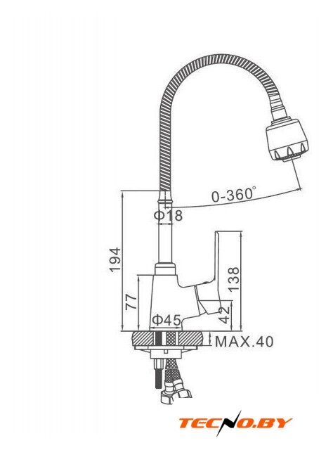 | Поворотный излив | 360 ° |