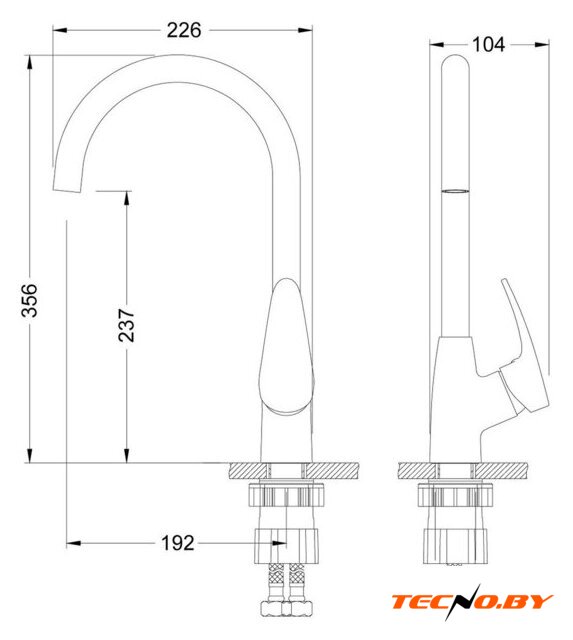 однорычажный смеситель для мойки, монтаж на раковину или столешницу